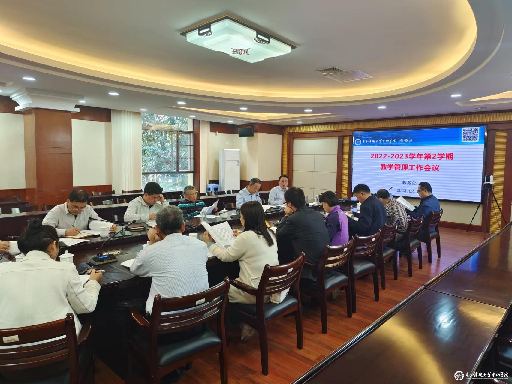 2月10日下午,学校在树德楼219会议室召开教学工作会议。会议学习了省教育厅2023年本科教育教学工作要点,明确了sunbet申搏2023年教学工作重点。会议由校领导吴坚强副院长主持,各二级学院副院长、马克思主义学院院长、体育部负责人、教务处负责人及相关人员参加了会议。