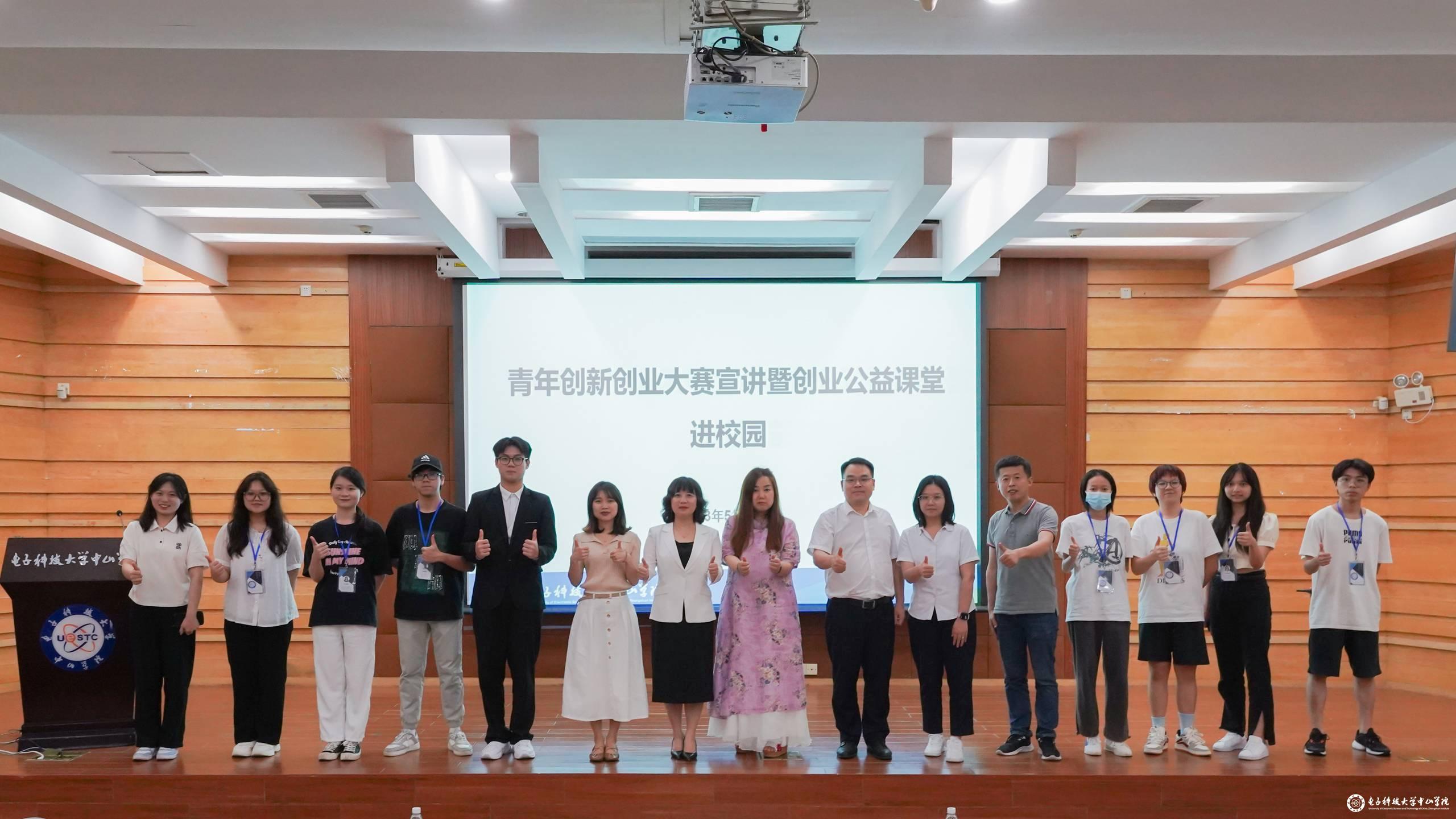 为切实提高sunbet申搏学生创新精神和创新创业能力,搭建“校-政-企”产教融合平台,5月18号下午,创新创业学院在图书馆报告厅组织开展了“青年创新创业大赛宣讲暨创业公益课堂进校园”活动。sunbet申搏教务处副处长、创新创业学院副院长卢满怀,中山市人力资源和社会保障局南朗分局何淑芬,广州德芯源企业管理有限公司总经理马兰花,瀚昇创业顾问(中山)有限公司首席顾问王春萍,副总经理张俊锋、刘耀华,和创新创业学院相关老师出席活动。