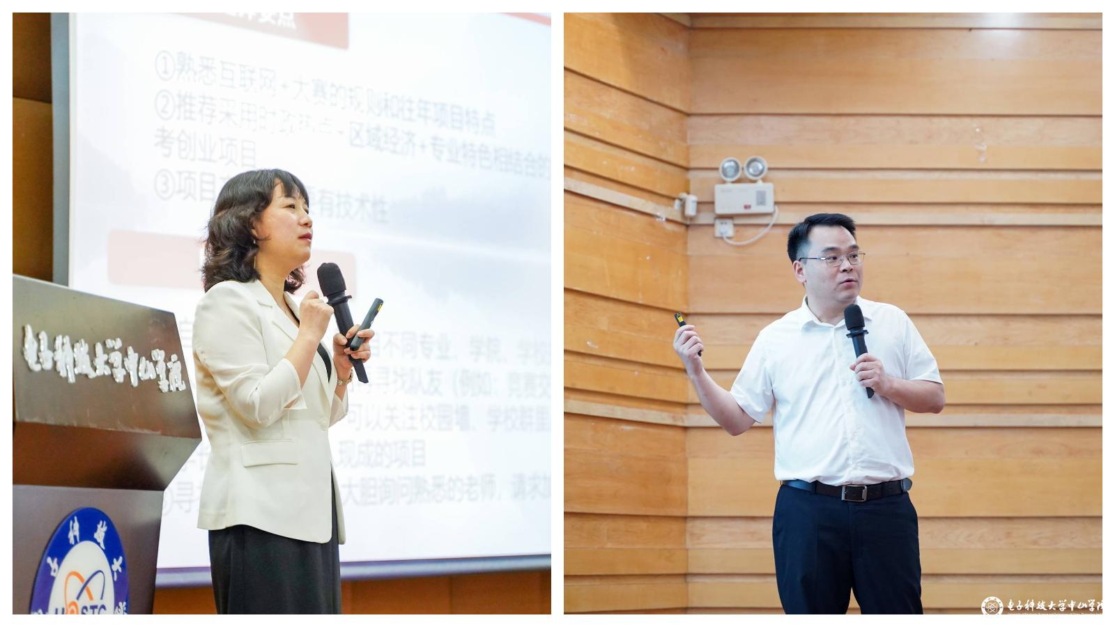 本次讲座邀请马兰花老师做《商业计划书呈现与路演答辩》的专题汇报。马老师以一个专业评委的角度向到场同学们介绍商业计划书和路演PPT完整的结构元素,认为创新点和成效是一个优秀项目的加分亮点与招牌。她结合往届“互联网+”国赛优秀案例进行分析,强调作为路演选手,应要自信大方,逻辑清晰,全面熟悉项目的每一个细节,鼓励同学们要把握机遇,发挥自身所长,让创新精神闪耀在青春赛场。张俊锋先生对翠亨新区(南朗街道)第二届创新创业大赛进行了宣讲,介绍了大赛的赛程赛制及相关安排。
