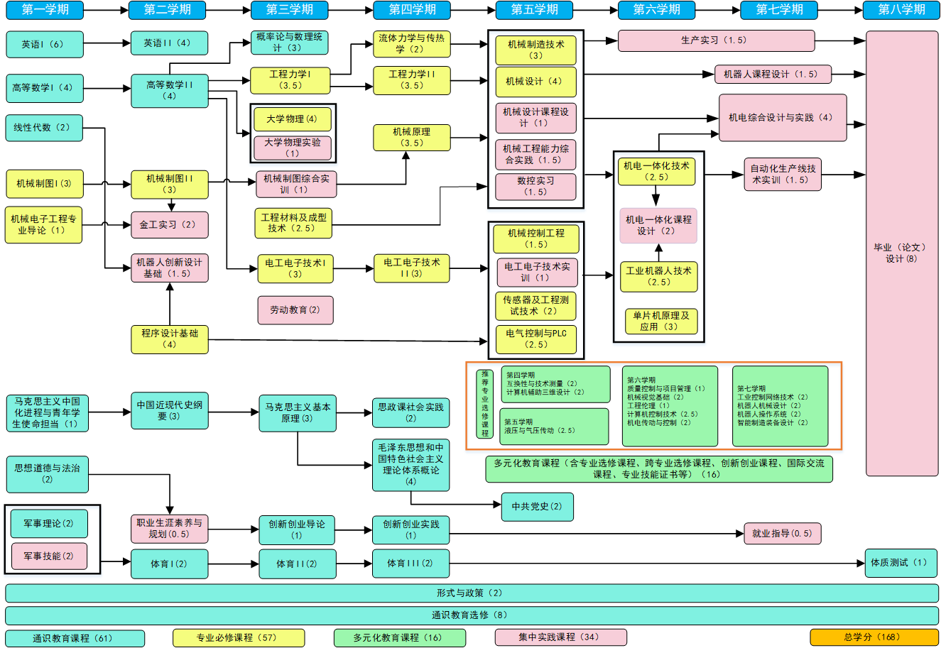 专业必修课程有利于夯实基础,学科专业交叉与融合。必修课包括机械制图、程序设计基础、工程力学、工程材料及成型技术、大学物理、电工电子技术、流体力学与传热学、机械原理、机械制造技术、机械设计、传感器及工程测试技术、电气控制与PLC、机械控制工程、工业机器人技术、机电一体化技术、单片机原理及应用。专业选修课包括液压与气压传动、数控技术、机器视觉基础、人工智能导论、材料成型与增材制造、移动机器人技术、智能制造系统等,有利于拓宽学生知识面,反映专业应用前沿;数量上满足学生选课的需要,有利于学生个性化发展。实践环节设置科学合理,能全面支撑学生应用能力、创新创业能力培养。专业将实践课程与学科竞赛相融合,将全国大学生机器人竞赛作为本专业的学科竞赛重点项目。2021年,sunbet申搏在全国普通高校大学生机器人竞赛指数排名中,名列广东省第七。