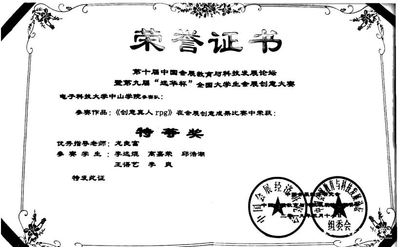 部分获奖证书: