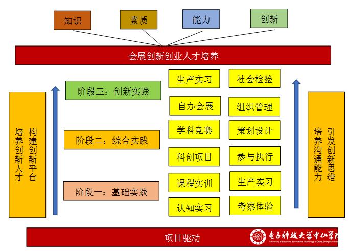 会展行业是我国新兴发展的现代服务贸易型产业,成为衡量一个城市国际化程度和经济发展水平的重要标准之一,会展经济与管理专业是面向会展行业需求而诞生的新兴专业,旨在为会展行业培养具有高素质、专业化、复合型的高级管理人才。电子科技大学中山学院会展经济与管理专业坚持以“高素质、专业化、复合型”的人才培养理念,结合学校“高水平应用型大学”的办学定位,采用基于产教深度融合的“项目+竞赛+实训”渐进式实践教学模式,把本专业建设成会展行业认可度高,具有可持续发展能力的区域特色应用型专业,并力争成为特色鲜明的省级一流本科专业。